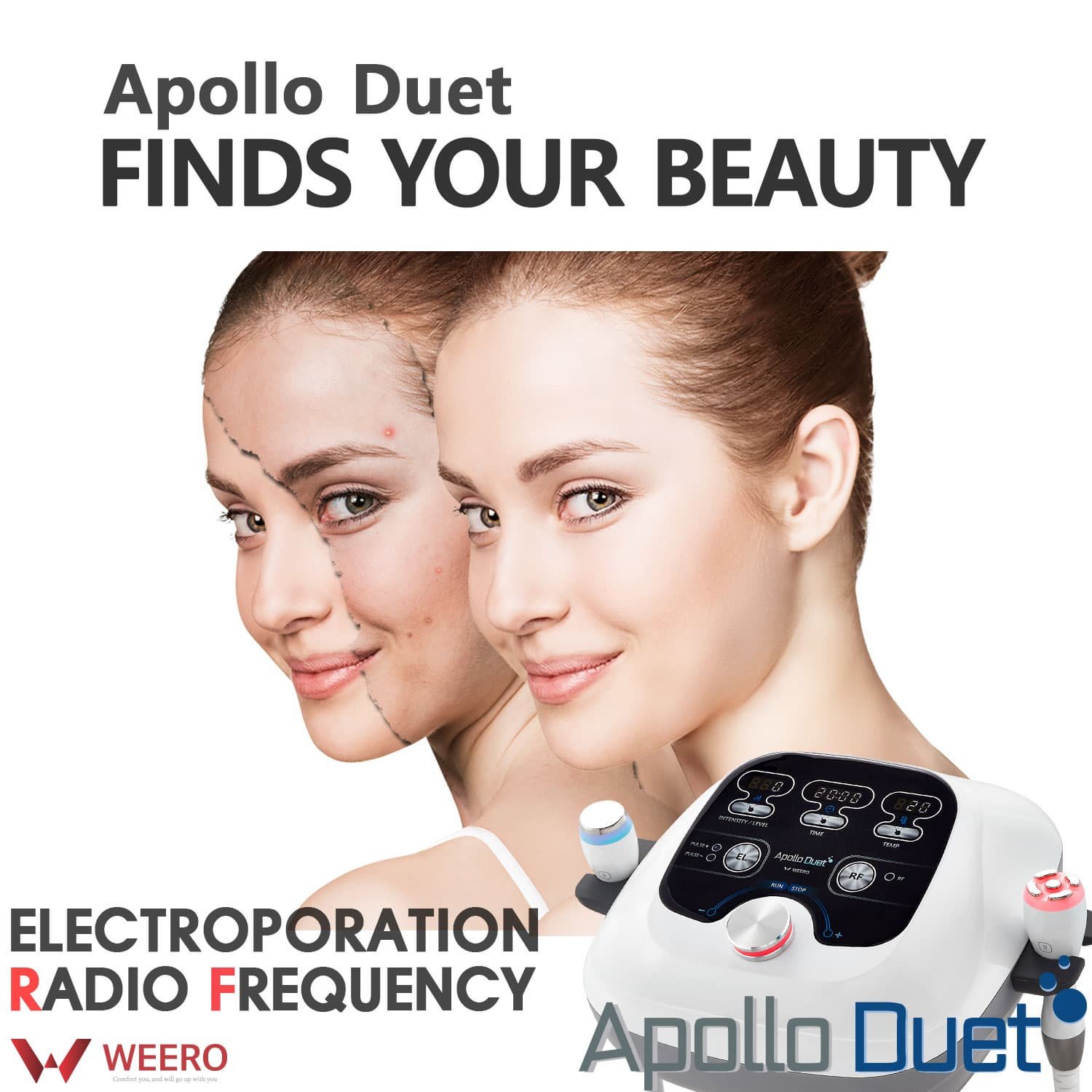 The Apollo Duet is a revolutionary facial station that combines 5 advanced technologies—including Multipolar RF, Electroporation, and Iontophoresis—with precise heating and cooling. This all-in-one device allows you to effectively treat inflamed skin, acne, seborrhoea, and rosacea, while delivering powerful anti-ageing and skin tightening results with zero downtime.