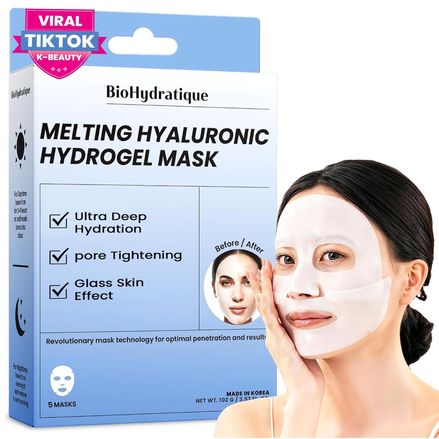 Meet the viral sensation from Korea, a truly unique and revolutionary K-beauty innovation. This game changing mask infused with Hyaluronic Acid quenches thirsty skin, leaving it feeling soft and revitalized. As it gently melts into your skin, it helps smooth uneven texture, supports your skin’s natural and youthful bounce, and unveils a luminous, dewy finish.