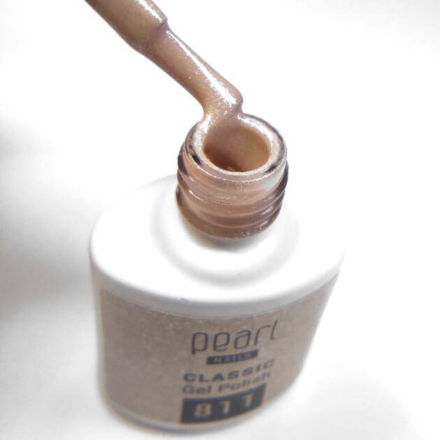 Shiny, pearlescent beige EFFEKT gel polish – with small silver glitter