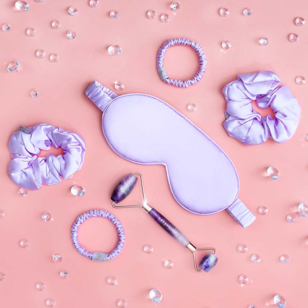 Facial massage with an amethyst roller will make your skin look fresh and radiant. The swelling will disappear and the contour and oval of the face will improve. The sleeping headband made of silk will take care of you even when you sleep! Thanks to silk scrunchies, the hair will not only look beautiful, but also will never be tangled and brittle again!