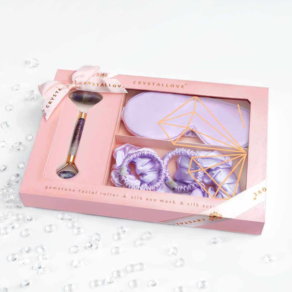 CRYSTALLOVE Amethyst home SPA set packed in a beautiful box – it’s a perfect gift for your mother, friend or yourself! Create a home SPA together and enjoy a rested, radiant complexion every day!