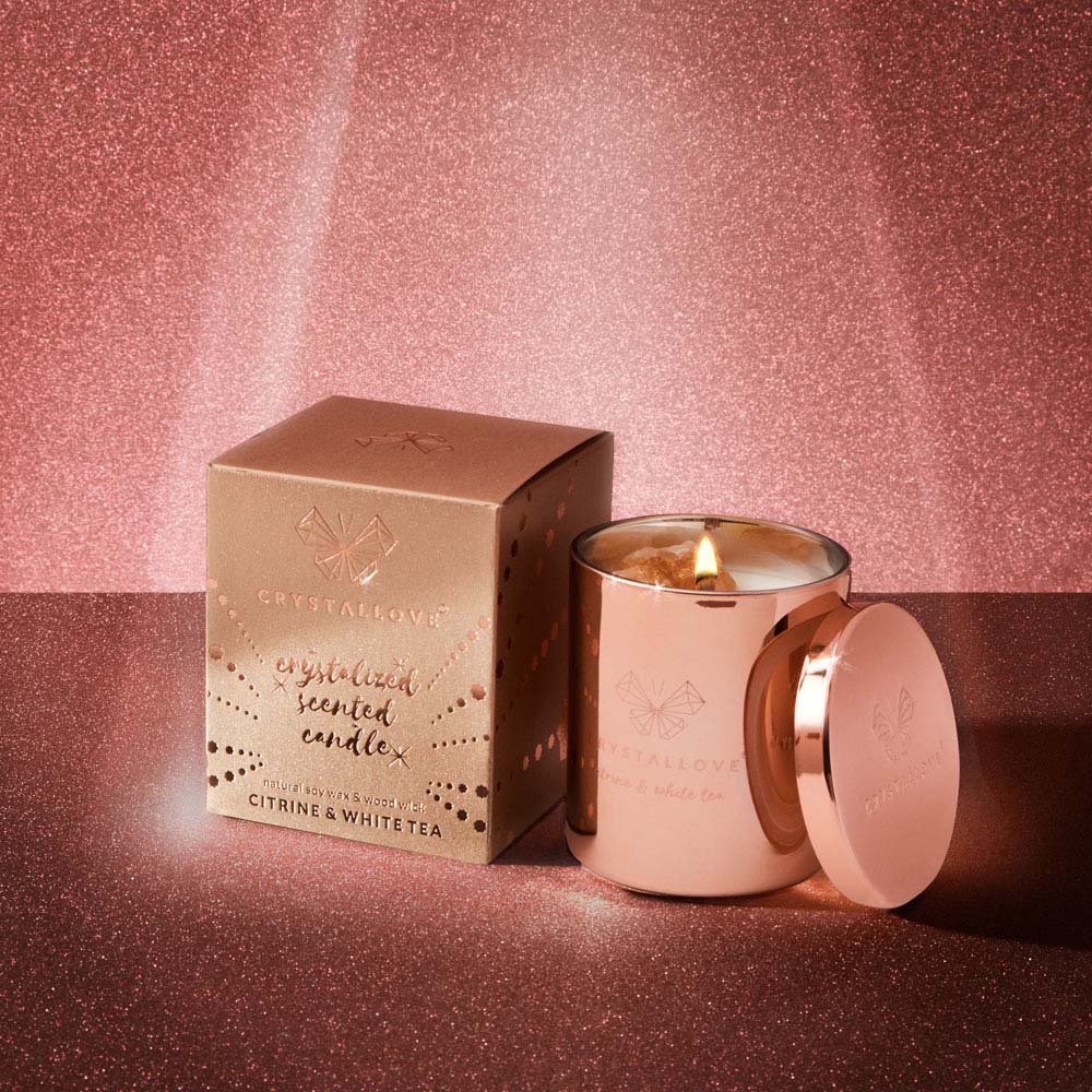 CRYSTALLOVE SOY CANDLE WITH CITRINE AND WHITE TEA – LIMITED