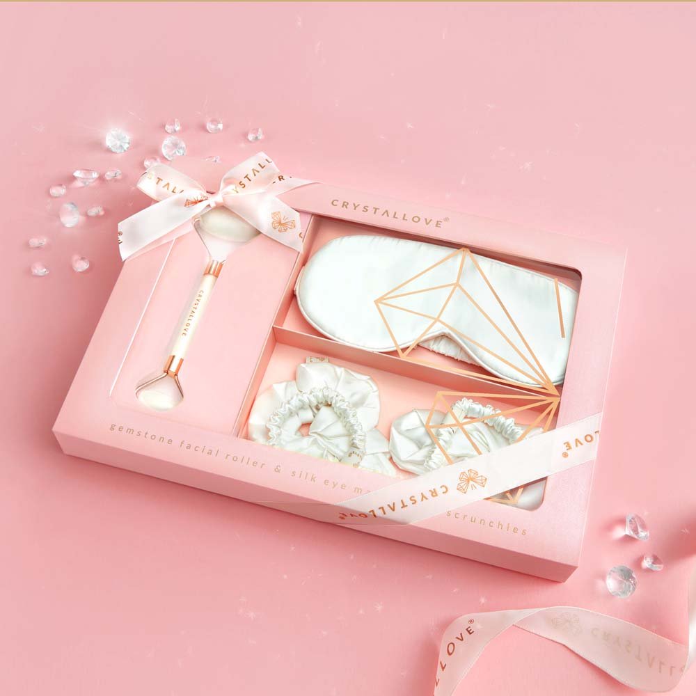 CRYSTALLOVE Clear quartz home SPA set packed in a beautiful box – it’s a perfect gift for your mother, friend or yourself! Create a home SPA together and enjoy a rested and radiant complexion every day