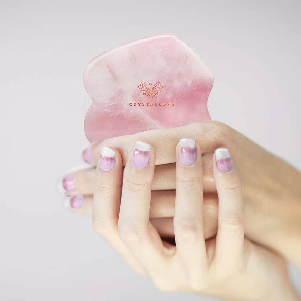 CRYSTALLOVE Rose quartz CONTOUR GUA SHA – gua sha face massage plate made of rose quartz