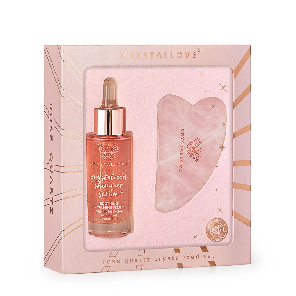 The unique Rose Quartz Crystalized Set inspired by the beauty and properties of rose quartz. The kit includes: