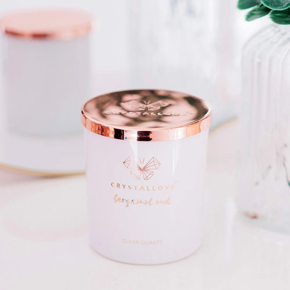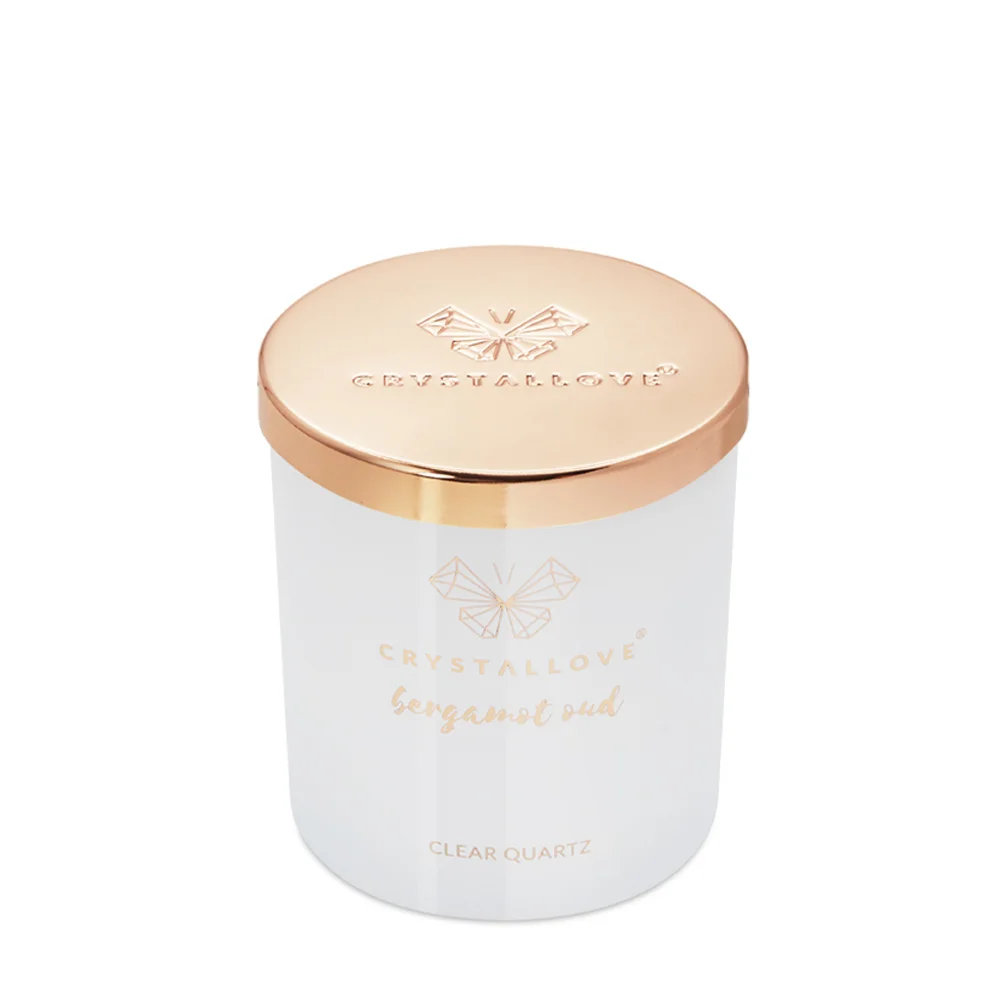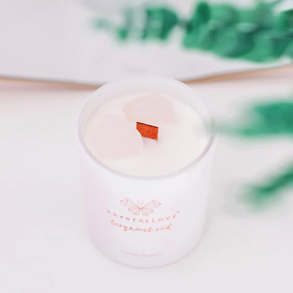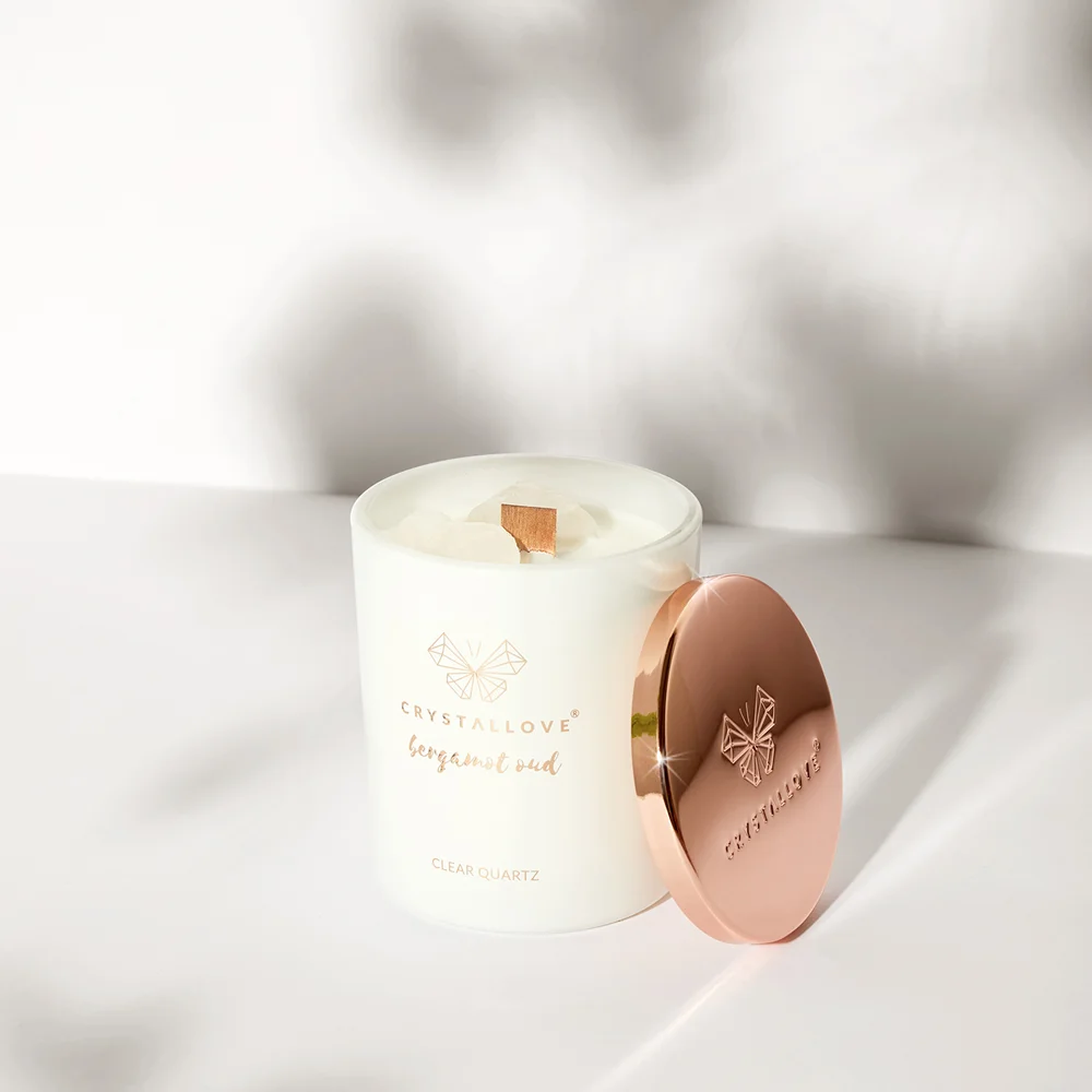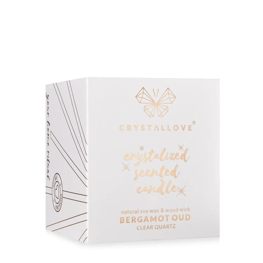 Create a unique atmosphere with the scented CRYSTALLOVE CLEAR QUARTZ SOY CANDLE – BERGAMOT OUD saturated with the energy of rock crystal. The candle is full of fragrant oils and relaxing scents. Fill your home with the fresh aroma of bergamot with hints of grapefruit, cedar and oud. You and your loved ones can enjoy this luxurious fragrance for up to 65 hours.