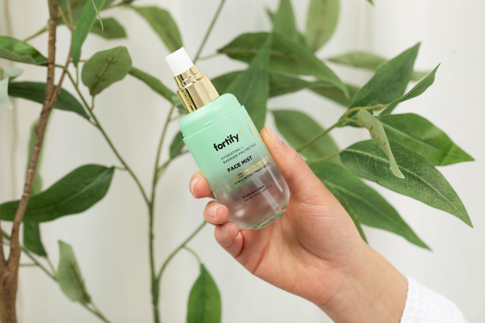 FORTIFY+ Hydrating and Barrier Protecting Facial Mist can be used under or over makeup to bring instant hydration and moisture to skins suffering from dehydration, dryness and irritation.