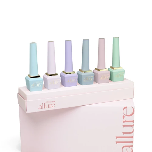 - After that, apply the selected allure gel polish color in one or two thin layers, depending on the shade, and apply it under UV for 2 minutes, under LED for 1 minute depending on pigmentation, and apply a layer of allure fixation-free Top Gel gloss gel to close.