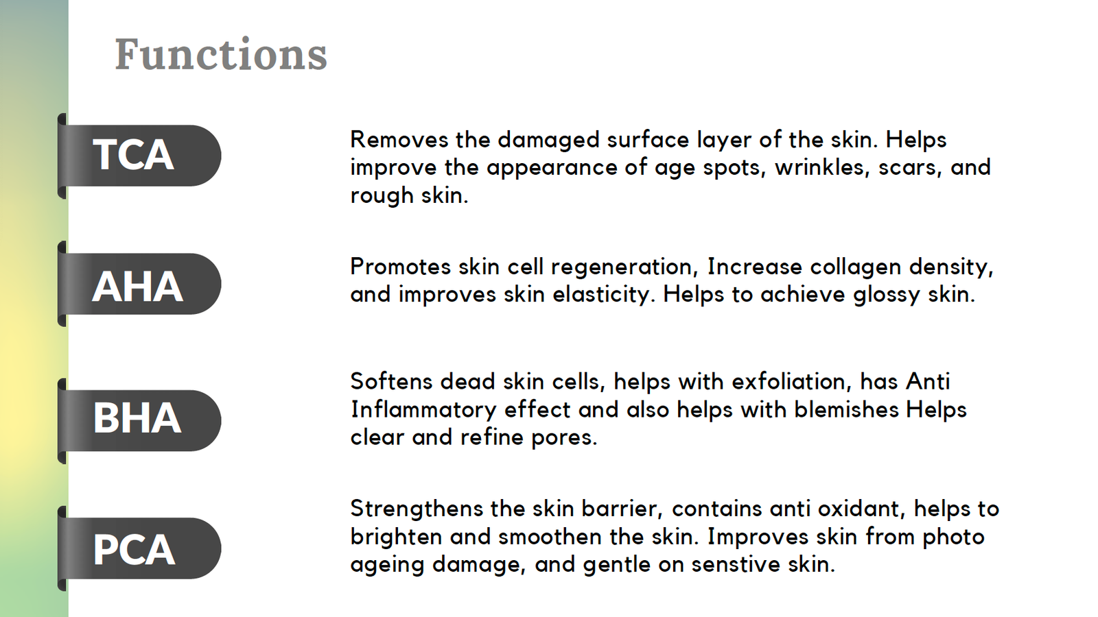 Water, Trichloroacetic Acid, Salicylic Acid, Glycolic