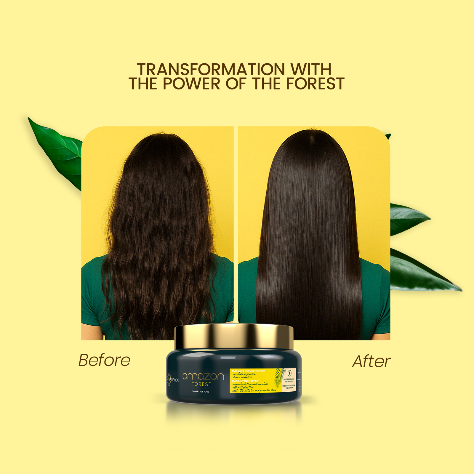 The AMAZON FOREST Post- Chemical Reconstructing Mask provides complete regeneration of post-chemical hair. It repairs the hair cuticles and leaves the hair 3x more resistant after the first application.